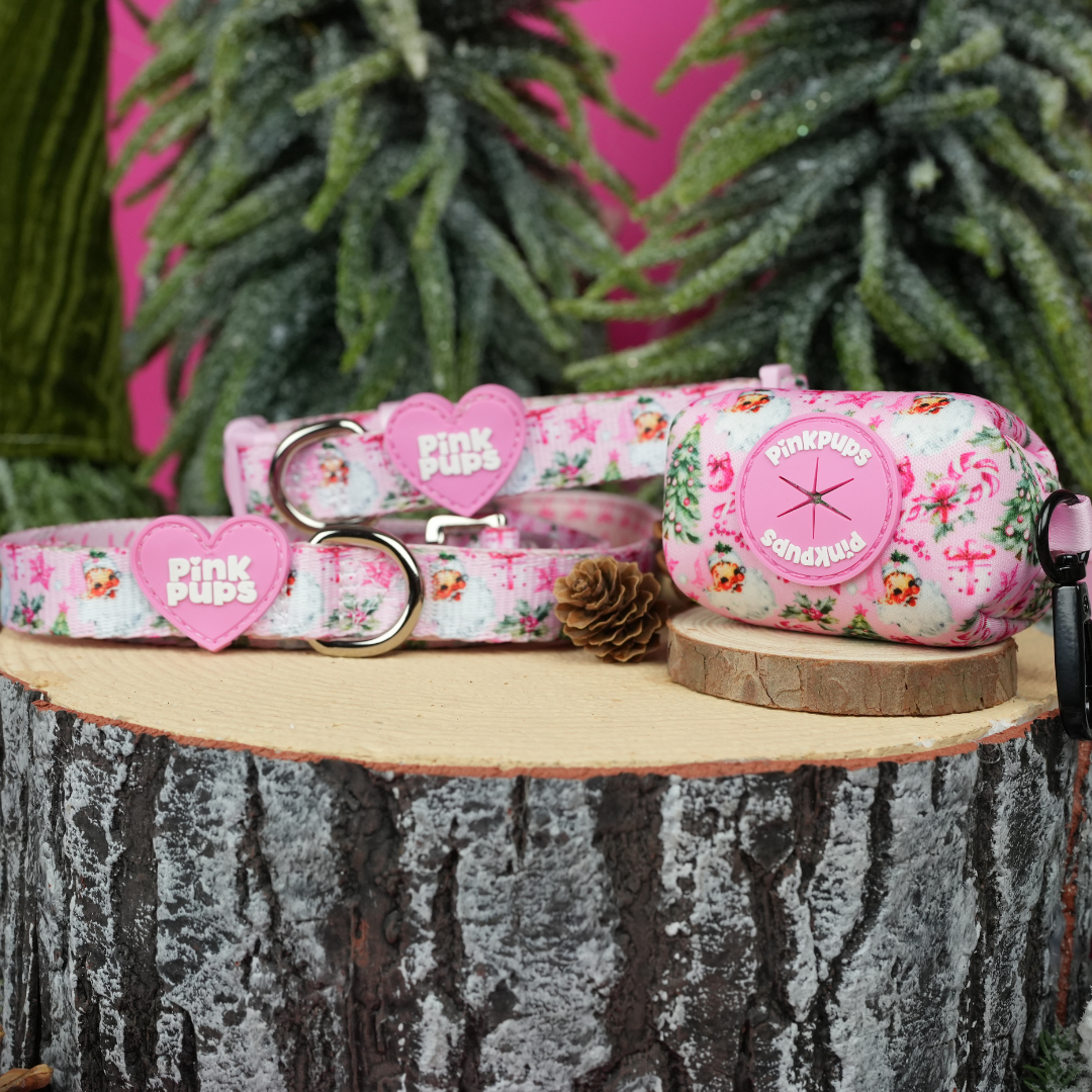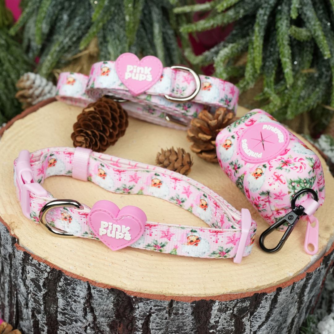 This fully reversible lead features a playful pink fabric with a cute retro Santa face and Christmas tree print, and when flipped, you’ll find a festive pink ribbon print.