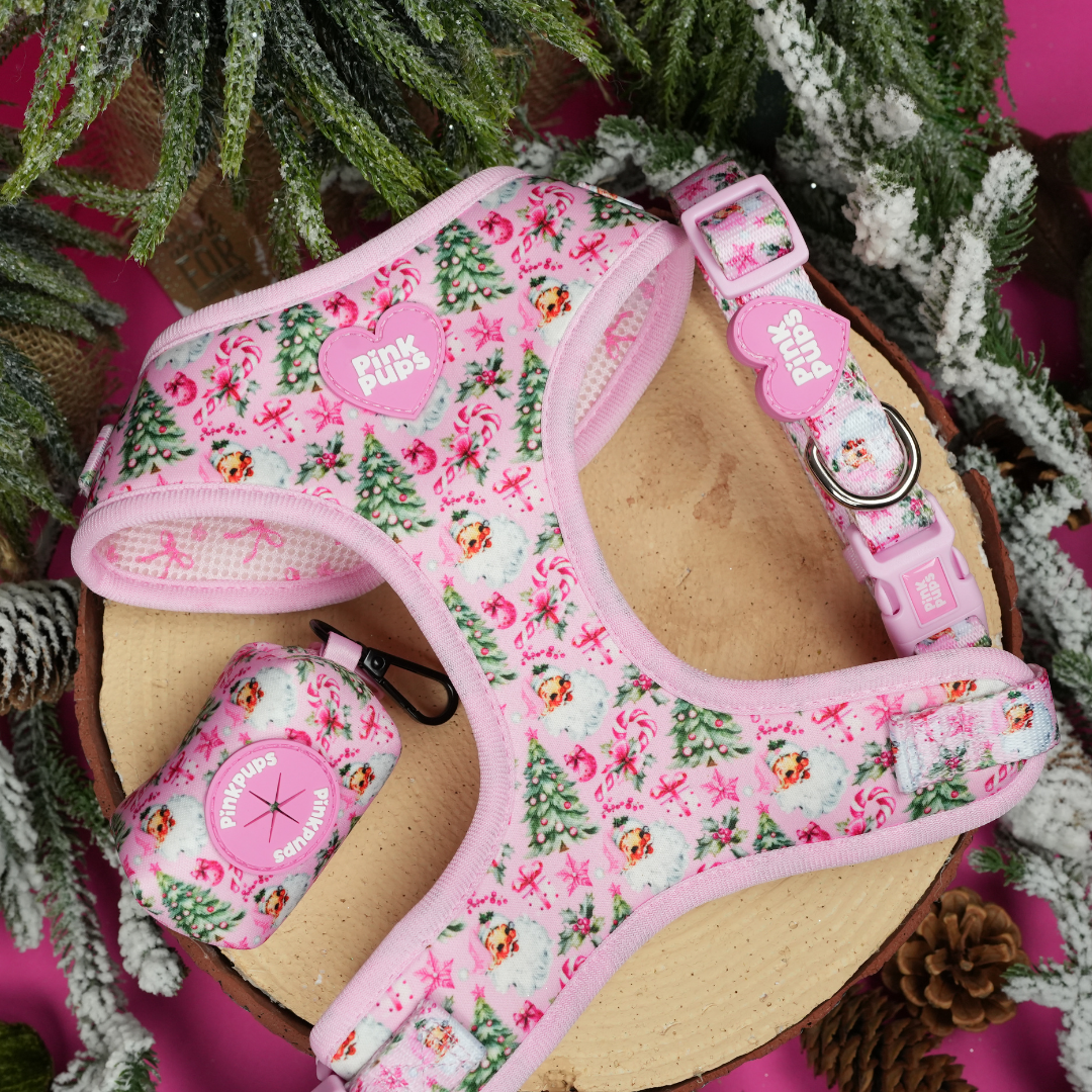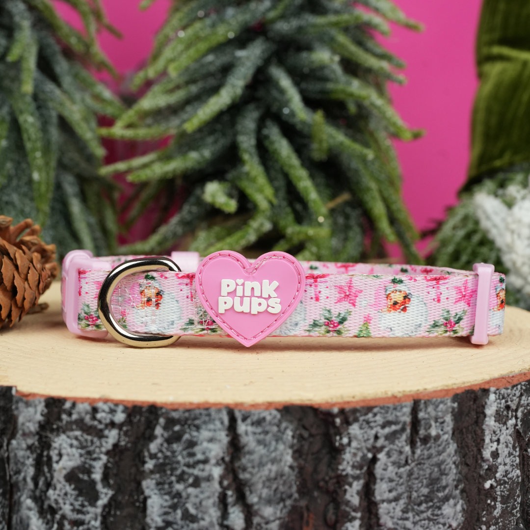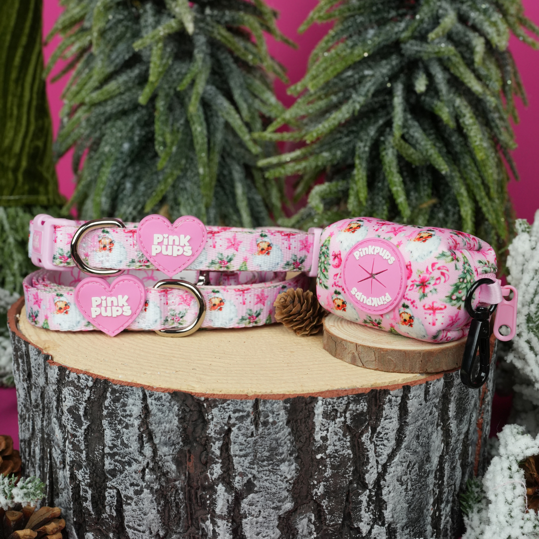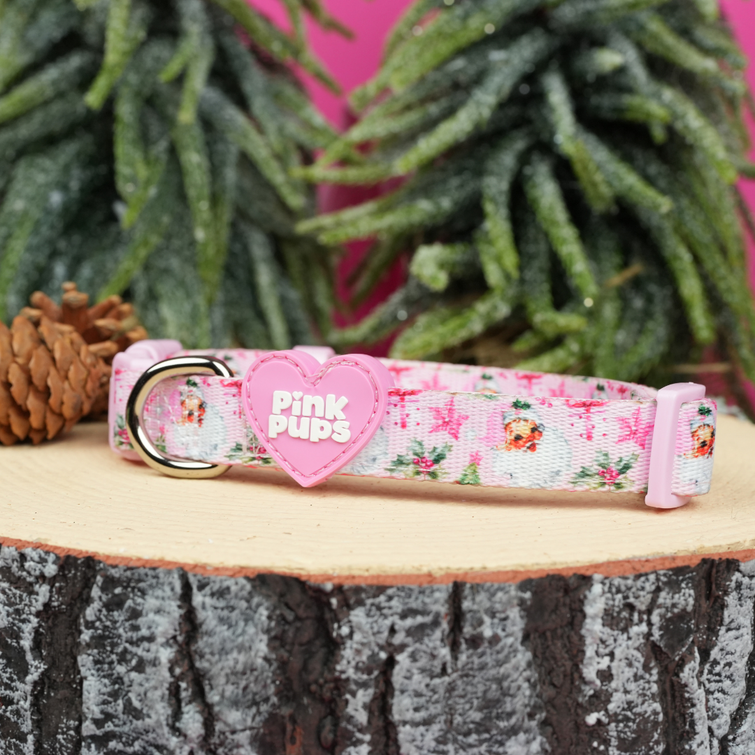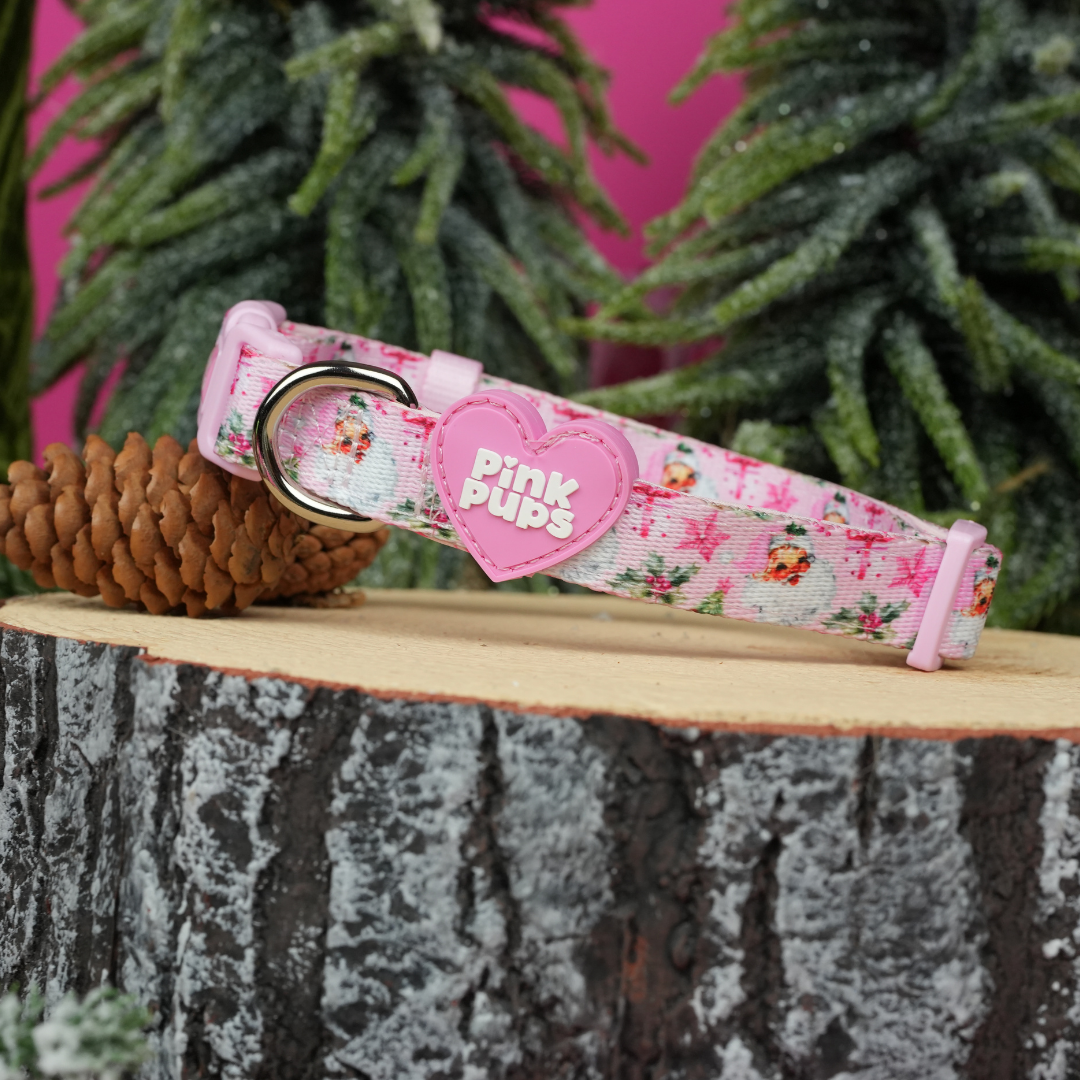 This fully adjustable dog collar brings the magic of Christmas to every walk, featuring a retro Santa face design on soft pink neoprene fabric.