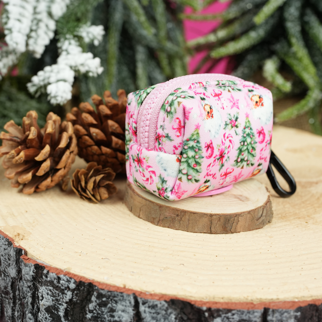 With rosy retro Santa face print, this neoprene bag is a stylish way to handle those doggy duties. Featuring a secure zip closure and a convenient clip, it easily attaches to your dog leash or dog walking bag.